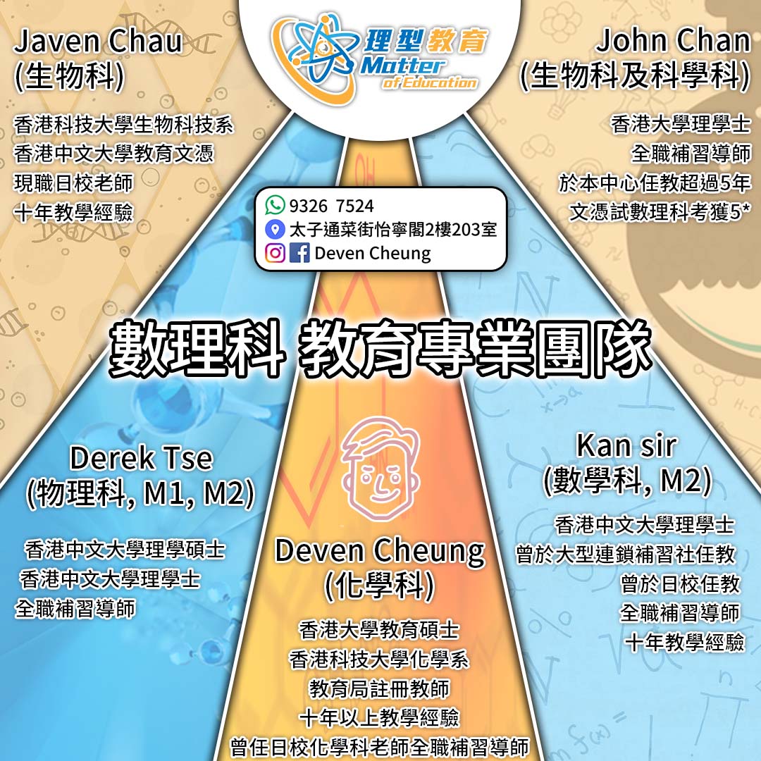 本中心有不少曾任職日校或現職日校老師為專科導師,提供高質教學及豐富資源,科目包括:數學、化學、生物、物理等。